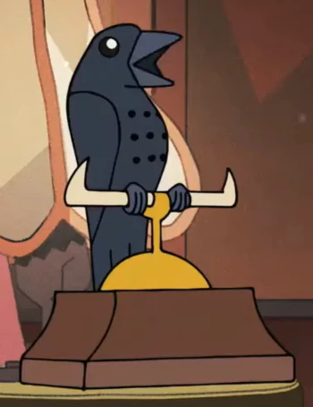 La apariencia general del teléfono es similar a la de un cuervo. Su pico y sus patas suelen ser de color naranja, pero se puede encontrar uno con el pico y las patas negras en la casa de Eda en una percha. Su vientre consta de un teclado telefónico que se puede utilizar para marcar.